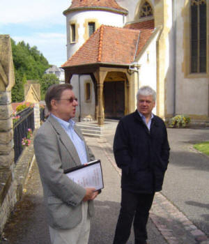 Dir. Schmid im Gespräch mit André Dubail vor der Kirche von Ferrette