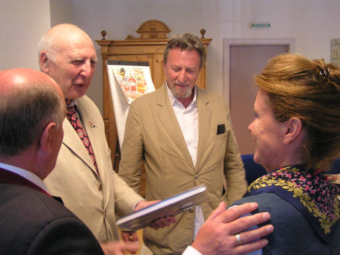 André Weber erhält von der Autorin M. Hermann das Buch Ötscherland überreicht